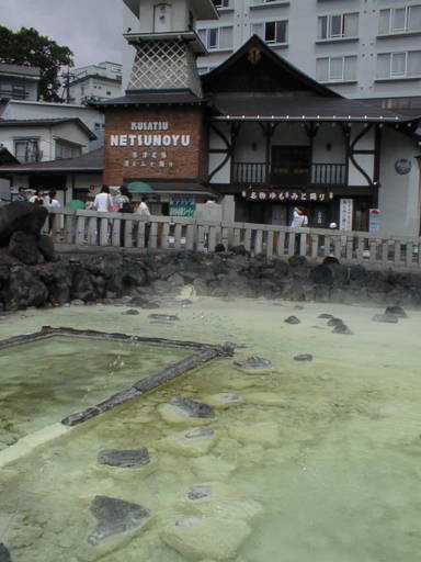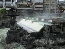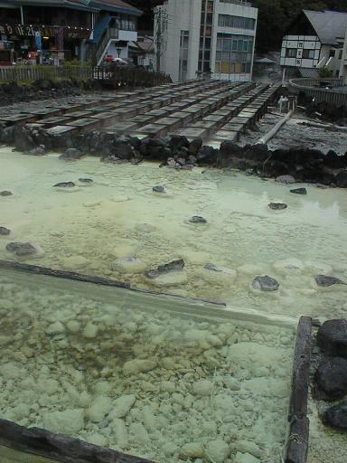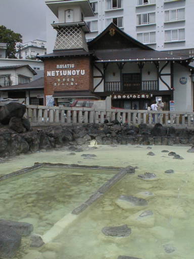 ありがたいことに、台風の足が速かったので、夜のうちに台風は通りすぎ、 翌日は天気も良くなりました。私は早朝に主なところの写真を撮りに 一周してきました。小さな町ですね。チェックアウトの後、 「温泉のデパート」と形容される浴場(さすがに有料) に2時間近く入ってきました。 でも、そんなにデパートって程でもないような気がしました。